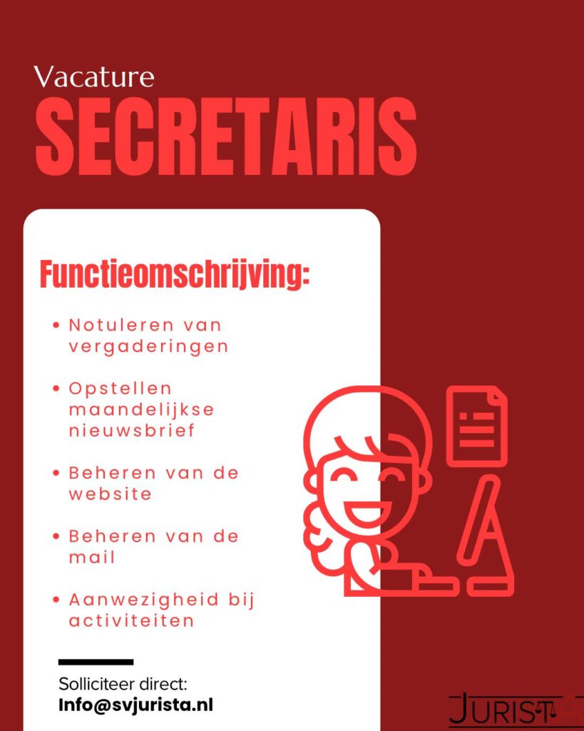 Ben je geïnteresseerd? Stuur je CV en je motivering op via ons mail adres: info@svjurista.nl.