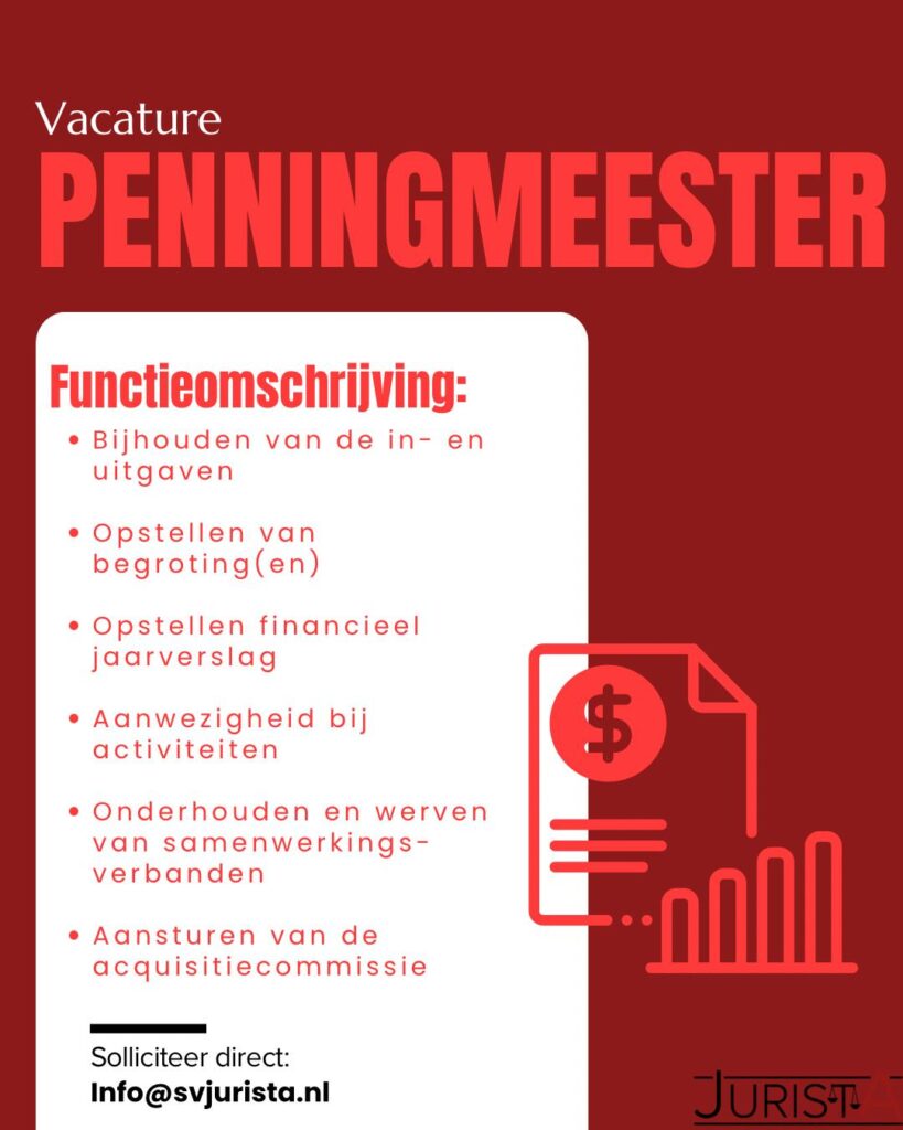 Ben jij nauwkeurig, verantwoordelijk en goed met cijfers? Dan zoeken wij jou als nieuwe penningmeester van Jurista!