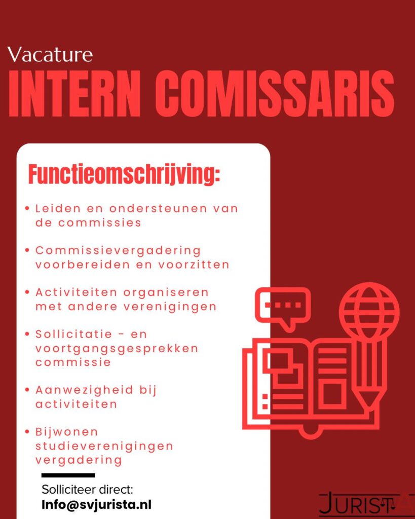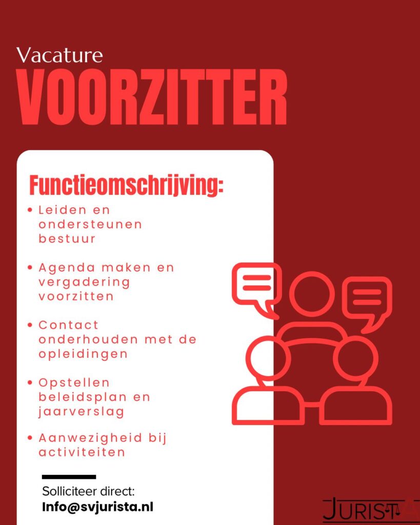 Het is een mooie kans om leidinggevende ervaring op te doen en actief bij te dragen aan Jurista!